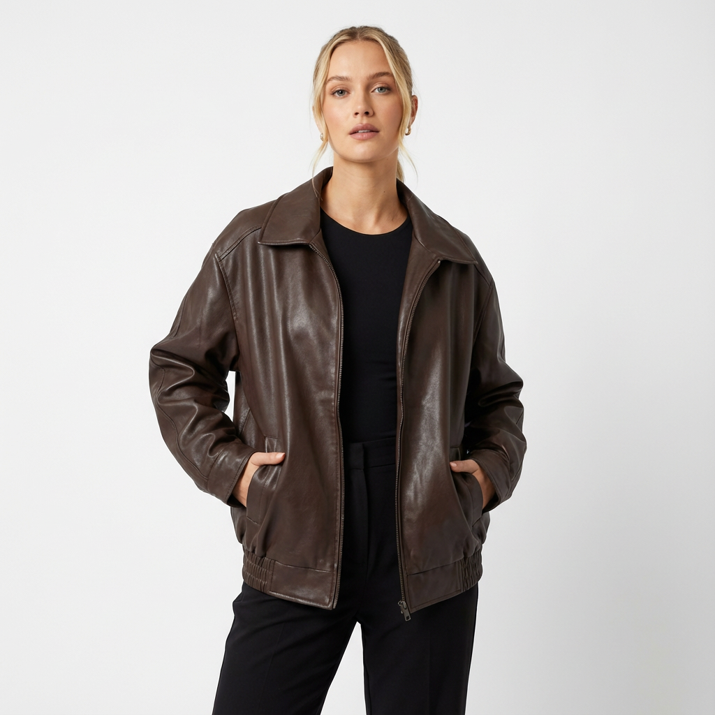 Step into comfort and confidence with the Amy Women’s Oversized Bomber Jacket. Designed for a relaxed fit, this jacket combines a boxy silhouette with a versatile zip-up feature, making it perfect for layering on any outing. Its long sleeves and elastic hem enhance both style and functionality, while ensuring that you stay cozy throughout the day.